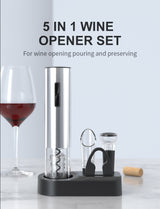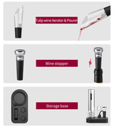 All-in-One Convenience: Includes everything needed for a perfect wine experience: electric opener, aerator, vacuum stopper, and charging base.