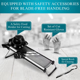 Mandoline Slicer | Stainless Steel Onion Slicer, Rotatable Dial to Adjust Thickness & Cabbage Shredder – Anti-Slip Base with Fingers Guard & Gloves