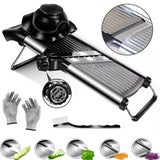 - High-Quality Stainless Steel Blades Made with sharp, durable stainless steel blades, this mandoline slicer for kitchen stainless steel ensures smooth and effortless slicing through any vegetable