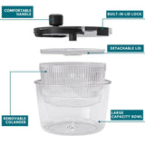 - LOCKING LID FOR STABILITY – The lettuce spinner features a secure locking lid that ensures the strainer basket stays stable while spinning